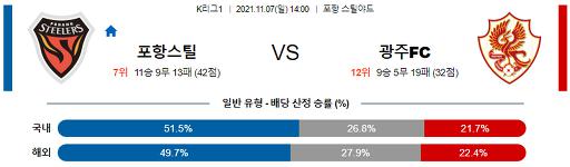 K리그1 11월 7일 14:00 포항 스틸러스 : 광주 FC