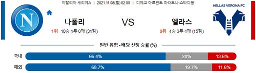 세리에A 11월 8일 02:00 SSC 나폴리 : 엘라스 베로나 FC