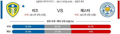 프리미어리그 11월 7일 23:00 리즈 유나이티드 FC : 레스터 시티