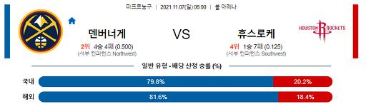 이전시즌 상대전에서 스윕 승리를 기록한 덴버는 휴스턴을 상대로 홈경기 6연승의 진행형에 있다. 또한, 휴스턴은 다음날 곤든스테이트 원정 백투백 일정을 위해서 힘을 분산해야 한다. 덴버 승리 가능성을 추천 한다.