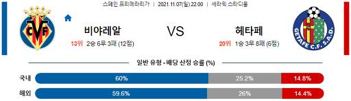 프리메라리가 11월 7일 22:00 비야레알 : 헤타페 CF