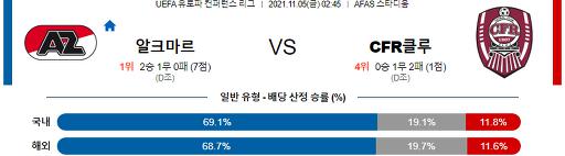 유로파리그 11월 5일 02:45 AZ 알크마르 : CFR 클루지