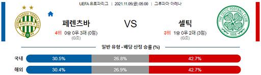유로파리그 11월 5일 05:00 페렌츠바로시 TC : 셀틱