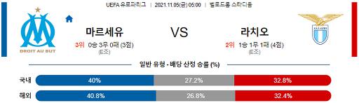 열람중 유로파리그 11월 5일 05:00 올림피크 마르세유 : SS 라치오 2021.11.04 562