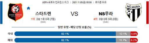 유로파리그 11월 5일 05:00 스타드 렌 FC : ND 무라