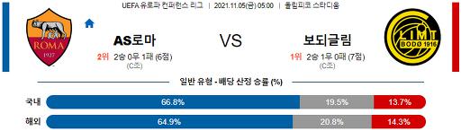 유로파리그 11월 5일 05:00 AS 로마 : FK 보되/글림트