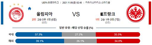 유로파리그 11월 5일 02:45 올림피아코스 : 프랑크푸르트