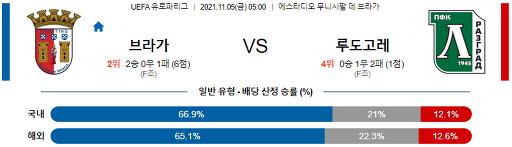 유로파리그 11월 5일 05:00 SC 브라가 : 루도고레츠 라즈그라드