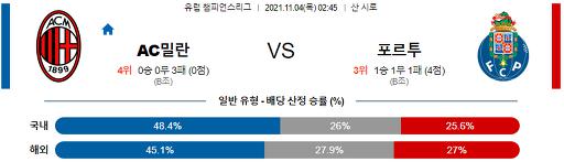 챔피언스리그 11월 4일 02:45 AC 밀란 : FC 포르투