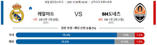 챔피언스리그 11월 4일 02:45 레알 마드리드 : 샤흐타르 도네츠크