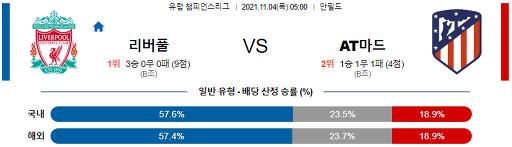 챔피언스리그 11월 4일 05:00 리버풀 : AT 마드리드