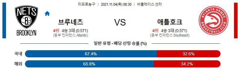 【NBA】 11월4일 브루클린 vs 애틀랜타