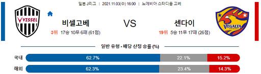 J리그 11월 3일 16:00 비셀 고베 : 베갈타 센다이