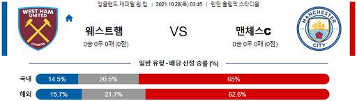 캐피털 원 컵 10월 28일 03:45 웨스트햄 : 맨체스터 시티