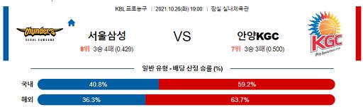 10월 26일 19:00 서울 삼성 : 안양 KGC