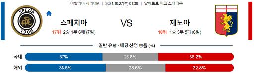 세리에A 10월 27일 01:30 스페치아 칼초 : 제노아 CFC