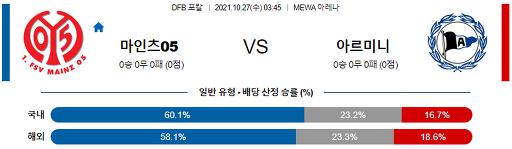 DFB 포칼 10월 27일 03:45 RCD 마인츠 : 아르미니아 빌레펠트