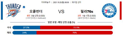 10월 25일 08:00 NBA분석 오클라호마시티 : 필라델피아