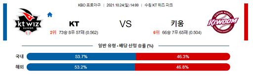 요키시 투수를 만만하게 볼수 없지만 올시즌 상대전 기록에서 데스파이네 투수가 우위에 있고 홈경기 일정에 있다는 것이 데스파이네 투수와 KT 타선에게 도움이 될것이다. KT 승리 가능성을 추천 한다.
