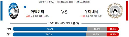세리에A 10월 24일 19:30 아탈란타 BC : 우디네세 칼초