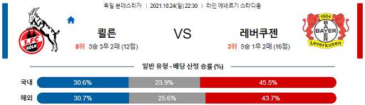 분데스리가 10월 24일 22:30 FC 쾰른 : 레버쿠젠