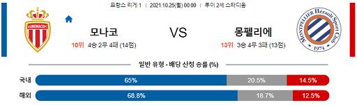 리그앙 10월 25일 00:00 AS 모나코 : 몽펠리에 HSC