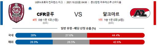 유로파리그 10월 22일 04:00 CFR 클루지 : AZ 알크마르