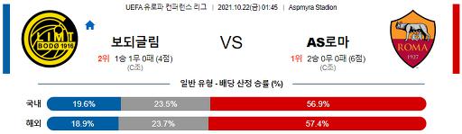 유로파리그 10월 22일 01:45 FK 보되/글림트 : AS 로마