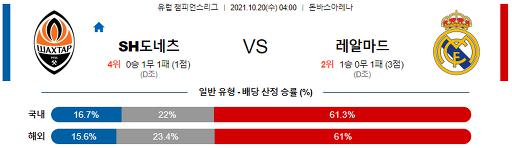 유로파리그 10월 20일 04:00 샤흐타르 도네츠크 : 레알 마드리드
