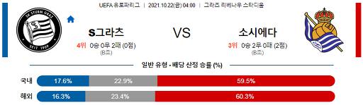 유로파리그 10월 22일 04:00 슈투름 그라츠 : 레알 소시에다드
