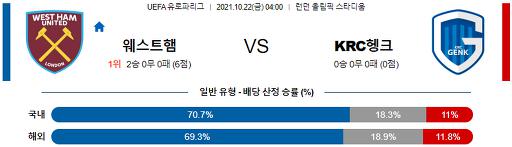 유로파리그 10월 22일 04:00 웨스트햄 : 헹크