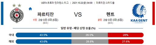 열람중 유로파리그 10월 22일 04:00 FK 파르티잔 : KAA 헨트 2021.10.21 660