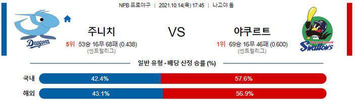 【NPB】 10월 14일 ​주니치 vs 야쿠르트
