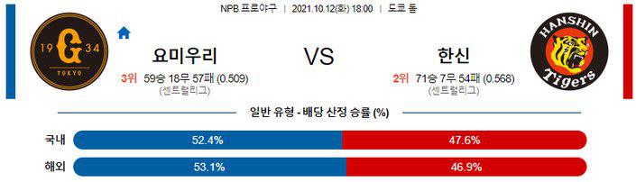 6연패에 빠져 있는 요미우리의 무거운 팀 리듬이 걸림돌이 될수 있는 경기다. 센트럴리그 다승 공동 1위. 평균자책점 2위를 기록중인 아오야기 코요우 투수가 선발 싸움에서 우위에 있다. 한신 승리 가능성을 추천 한다.