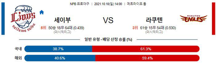 【NPB】 10월 10일 ​세이부 vs 라쿠텐