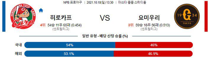 전일 경기 승리로 4연승에 성공한 히로시마와 5연패에 빠지게 된 요미우리의 상반된 팀 리듬을 무시할수 없고 선발 투수의 최근 흐름에서도 도쿄올림픽 이후 떨어졌던 투구 리듬이 다시금 올라오고 있는 에이스 모리시타 투수가 우위에 있다. 히로시마 승리 가능성을 추천한다.