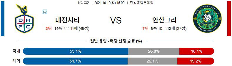 K리그2 10월 10일 16:00 대전 시티즌 : 안산 그리너스 FC