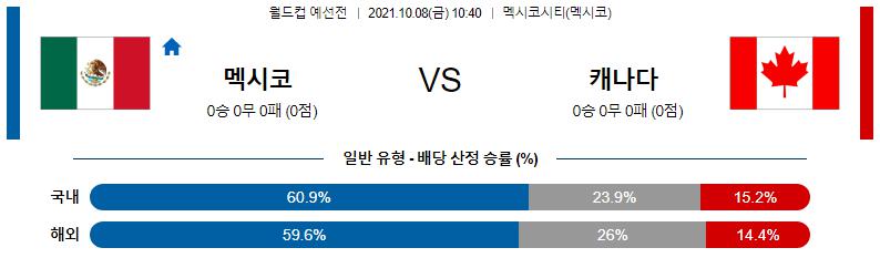 근소 전력 우세를 앞세운 멕시코가 상대를 몰아칠 준비를 마쳤다. 이번 명단서도 가용 전력을 전부 소집하며 공·수 스쿼드를 두텁게 만들었다. 맞대결 전적마저 좋아 승기를 잡는데 큰 무리가 없다. 캐나다가 난전을 꾀하지만 공·수 불안이 대두되는 상황서 이변을 일으키긴 힘들다. 멕시코 승, 오버 ▲(2.5점 기준)를 예상하는 쪽이 옳다.