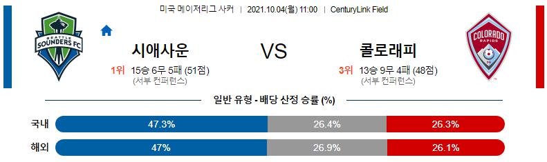 MLS 10월 4일 11:00 시애틀 사운더스 FC : 콜로라도 라피즈