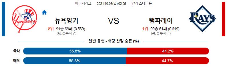 10일 3일 02:05 MLB 뉴욕 양키스 : 탬파베이 MLB분석