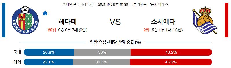 【프리메라리가】 10월4일 헤타페 CF vs 레알 소시에다드