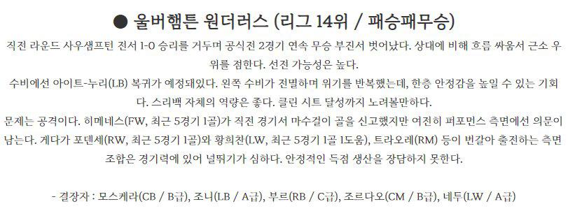 프리미어리그 10월 2일 23:00 울버햄튼 : 뉴캐슬 유나이티드 FC