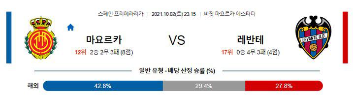 프리메라리가 10월 2일 23:15 RCD 마요르카 : 레반테 UD