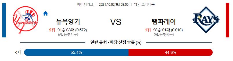 10일 2일 MLB 뉴욕 양키스 : 탬파베이