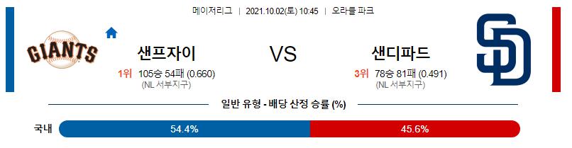 10일 2일 MLB 샌프란시스코 : 샌디에이고