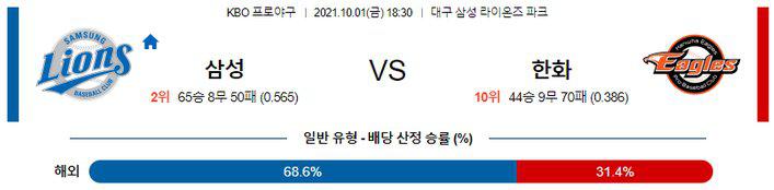 올림픽을 다녀온 이후 7경기 연속 QS를 기록중인 원태인 투수가 선발 싸움에서 우위에 있는 경기. 또한, 선발 투수의 상대전 기록에서 많은 차이가 발생하며 타선의 기대치 역시 삼성의 손을 들어줄수 있는 타이밍 이다. 삼성 승리 가능성을 추천 한다.