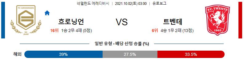 에레디비시 10월 2일 03:00 FC 흐로닝언 : 트벤테