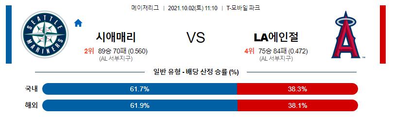 10일 2일 MLB 시애틀 : LA에인절스