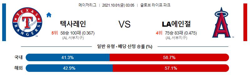 【MLB】 10월1일 텍사스 레인저스 vs LA 에인절스