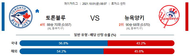 【MLB】 10월1일 토론토 블루제이스 vs 뉴욕 양키스
